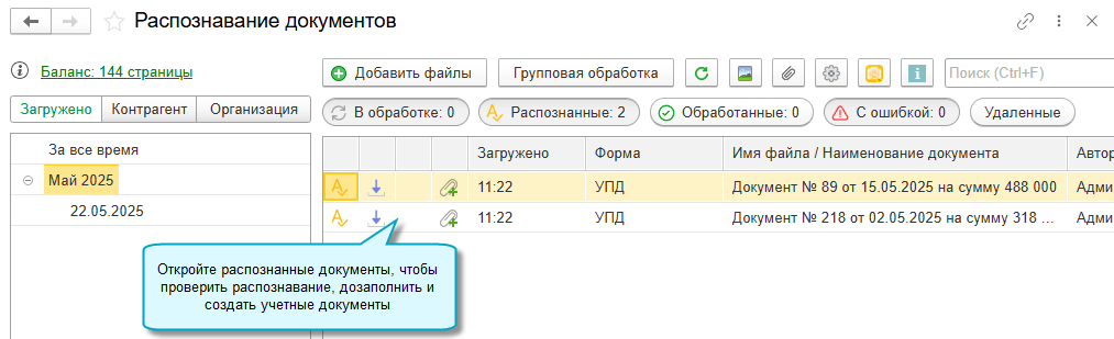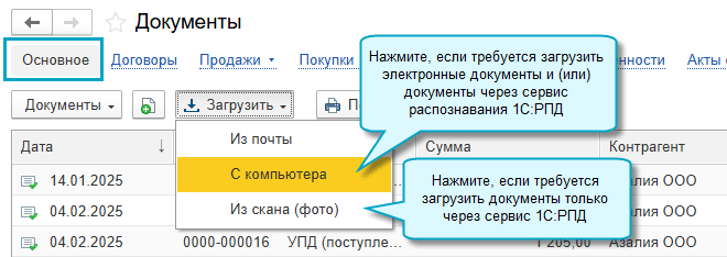 В простом интерфейсе загрузка документов доступна также в общем журнале Документы.